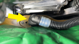 NoteCarefully maneuver hose in between HV battery and vehicle body, Note orientation of the hose during install