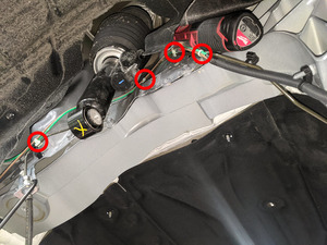 - Position the clips (x4) that attach the air suspension lines from the RH rear brake line.
