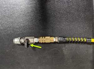 - Remove the Schrader valve cap from the air suspension reservoir.