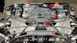 - Remove the coolant catcher from under the subframe fixture assembly.