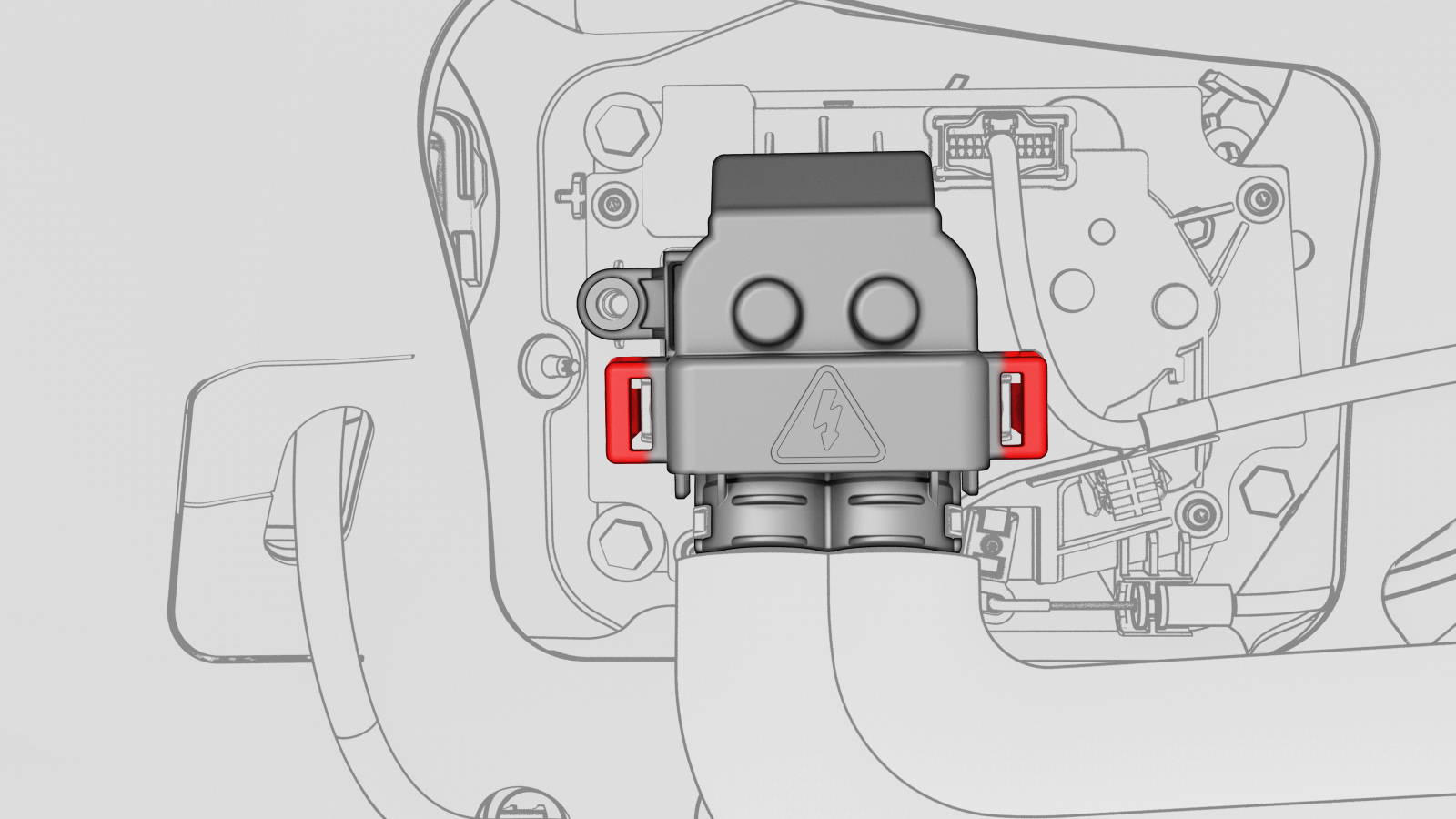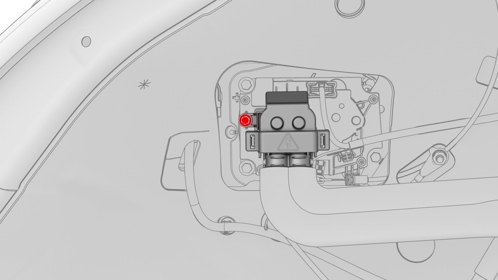 - Remove and discard the bolt that attaches the charge port safety cap to the charge port assembly.