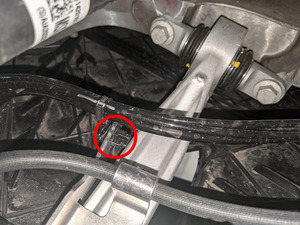 - Remove the bolt that attaches the LH rear brake hose from the LH rear lower control arm.