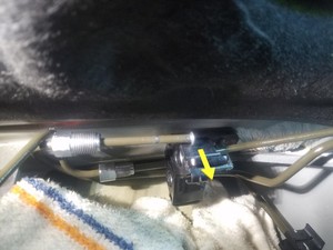 - Remove the shop rags from underneath the front brake pipe junction block.