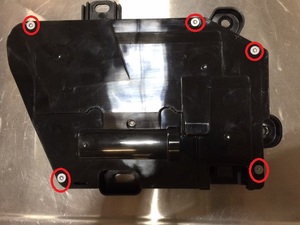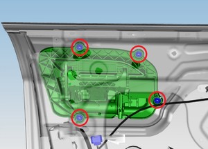 - Remove the butyl patch and plug that cover the LH front door exterior release handle fastener access holes.