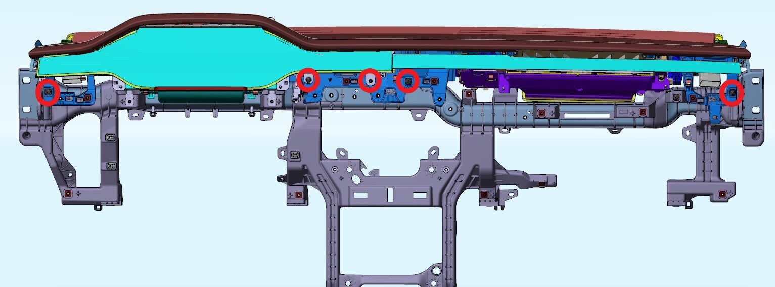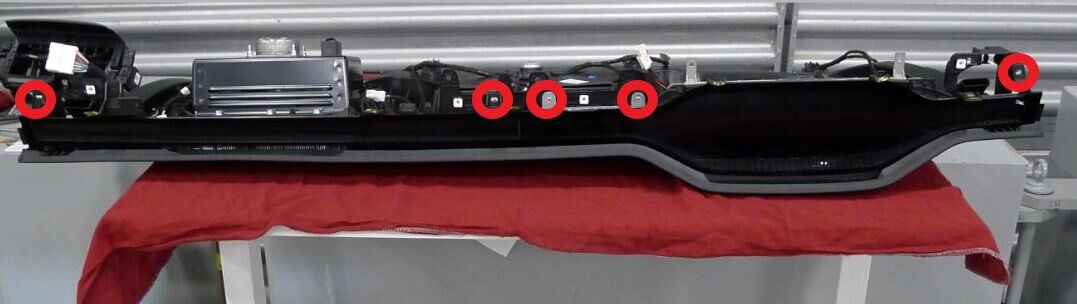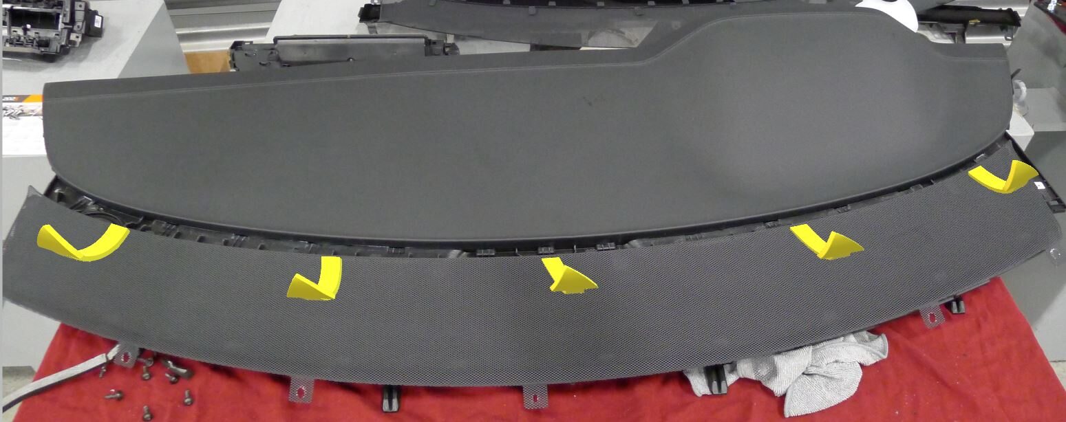 Note21x clips, 6x datums, 4x connectors, Release each IP decor connector clip from IP carrier then disconnect from IP harness