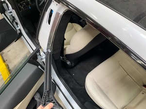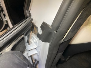 - Remove clip that attaches the LH rear body side primary seal to the B-Pillar panel.