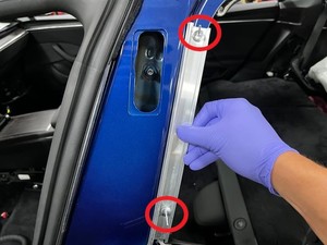 Remove any remaining debris from the B-pillar, and then use an IPA wipe to clean the body.