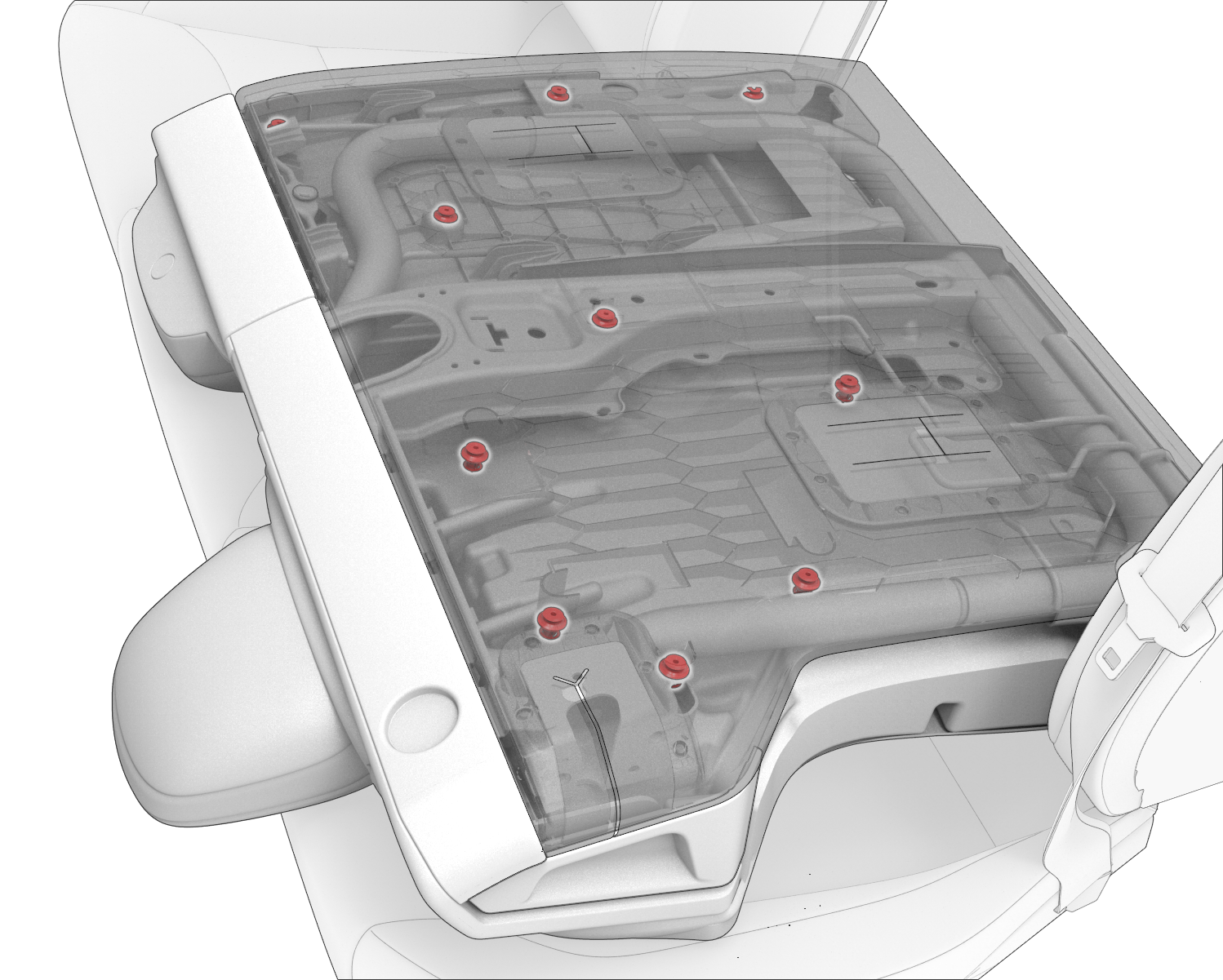 - Release the clip in the center armrest closeout, and then lift the center armrest closeout upwards and away from the backrest frame.