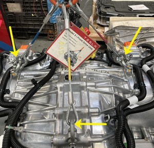 - Remove the drive unit sling hooks tool (x3) from the rear drive unit.