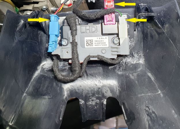 - Carefully pull down on the upper camera cover to release the clips (x4), disconnect the electrical connectors (x3), and then remove the cover from the vehicle.