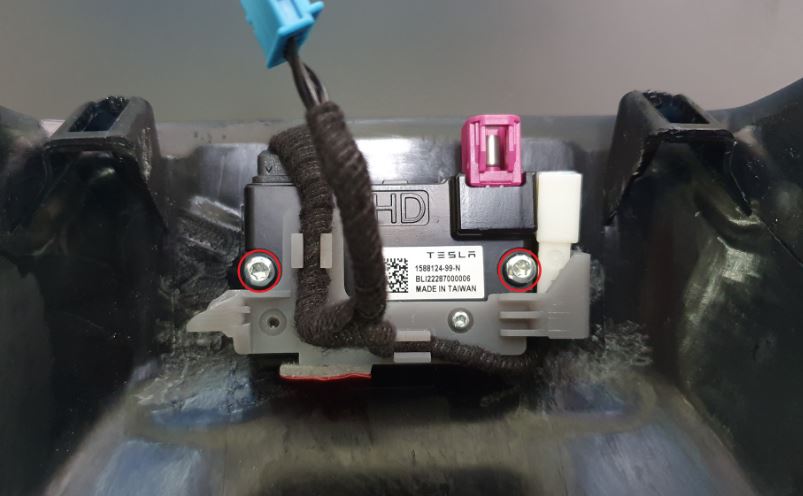 | Bolts (x2) that attach the occupant camera to the upper camera cover |
