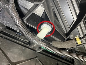 - Compress the tabs (x2) to release the hood latch actuator and cable from the hood latch assembly.