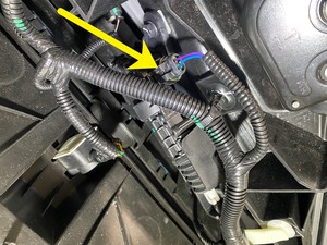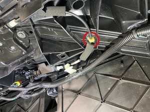 - Connect the hood latch actuator and cable assembly electrical connector, and then engage the locking tab.