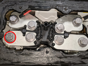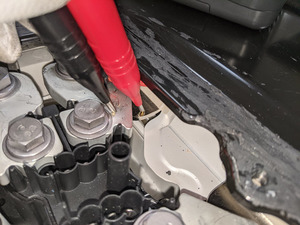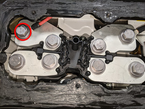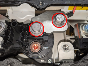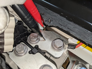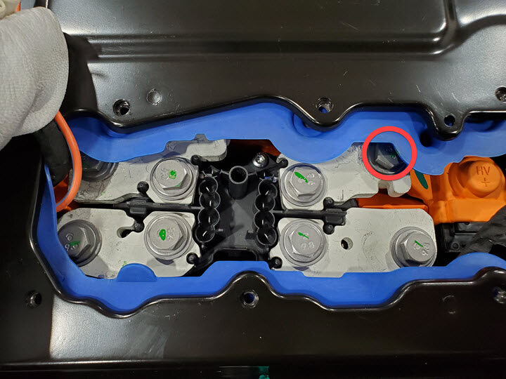 the bolts that attach the busbars to the HV battery fast charge contactor, take a cell
