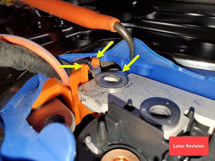NoteVehicles built before September 19, 2022 only - The AC filter branch of the AC harness is removed from the negative linlet fast charge busbar in this step.
