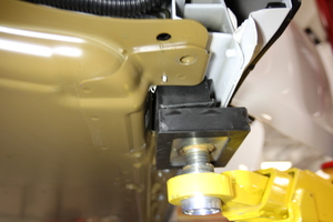- Install the HV battery fast charge contactor into the HV battery, and onto the guide pins (x2) of the fast charge insulator.