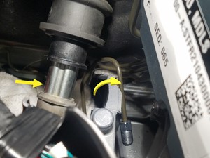 - Move the flexible brake lines behind the brake fluid reservoir.