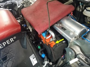 Remove the bolts (x3) that attach the LV battery to the vehicle, and then move the battery aside.
