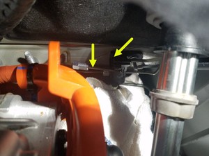 - Guide the rear end of the pipe between the multi-system beam and AC compressor in a vertical position.