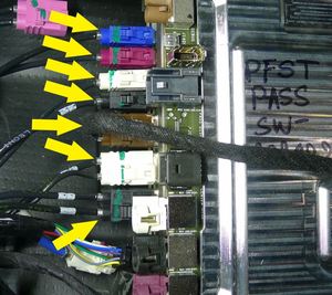 - Release the connector locks, and then disconnect the connectors (x6) at the LH side of the entertainment motherboard.