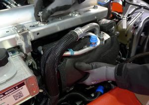 Install clip securing the coolant hose to the AC compressor bracket