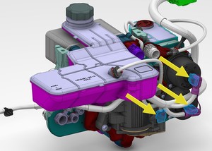 NoteManeuver underneath coolant bottle and multisystem beam