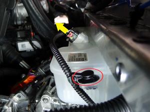 Disconnect the coolant bottle level sensor connector