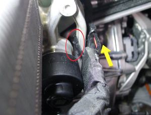 Remove clips securing heat pump harness at the bottom of coolant bottle