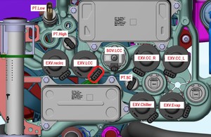 Release thermal harness from PT coolant pump, Chiller pump, and Octovalve