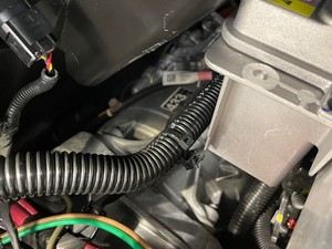 Install clip securing the supermanifold to battery pump supply hose onto LV battery
