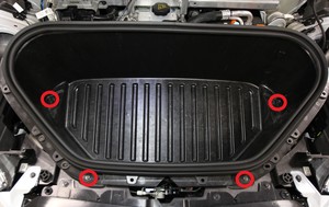 Apply Loctite 222 onto front aero shield bolts and install fasteners securing front aero shield to vehicle