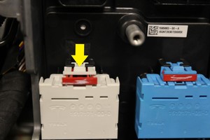 Note2x connectors Secure FRL first, Seat LV battery connection and push black connector lock inwards to secure, Engage green locking tab when fully seated