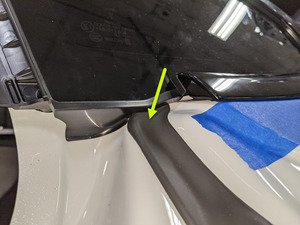 - Apply primer to the urethane path and any areas where the paint was damaged during the removal of the LH rear quarter glass. Allow the primer to dry for at least 2 minute.