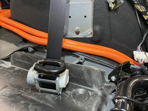 then install the nut that attaches LH rear seatbelt retractor to the body.