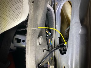 - Install the LH rear door latch through the wheelhouse insulator.