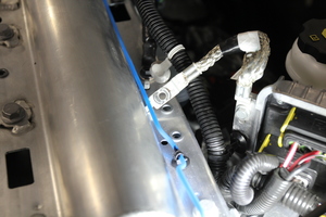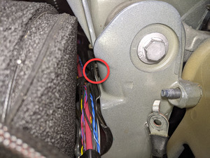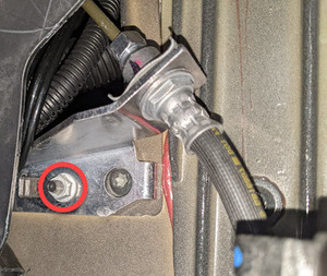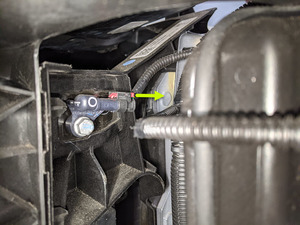 Install frunk harness ground onto LH footwell area
