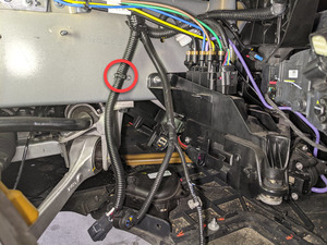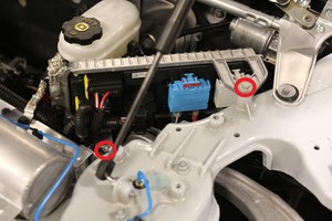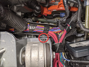 Secure frunk harness onto RH footwell area