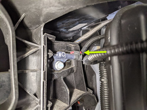 Install bolt securing frunk harness ground near RH footwell area
