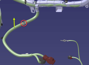 Release clip securing the supermanifold to battery pump supply hose from LV battery