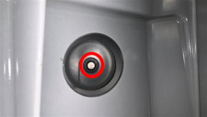 - Remove the bolt that secures the charge port busbar connector access door.