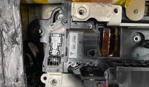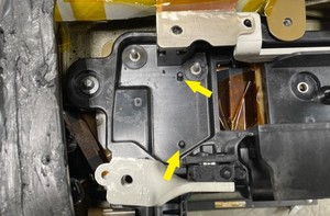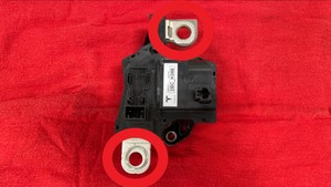 - Remove the HV battery negative contactor from the mounting studs (x2) and guide pins (x2), and out of the HV battery.