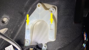 - Slide down to engage the tabs (x2) that attach the bracket the charge port ECU.