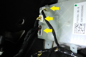 - Release the tabs (x2) and then move upward the charge port ECU onto the bracket. Remove the ECU from the vehicle.