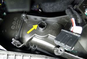 Install the screws (x2) that attach the RH footwell duct actuator to the