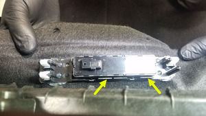 - Install the trunk 2nd row seat fold switch onto the button carrier.