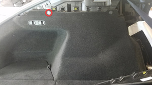 - Remove the clip that attaches the LH trunk side trim to the C-pillar support bracket.