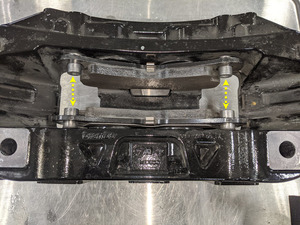 - Remove the brake pad anti-rattle clips from the LH front brake caliper.