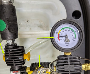 - Once the gauge reads zero, close the coolant refill valve.
