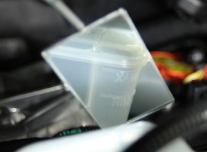 NoteUse a mirror to aid visually.NoteMake sure the coolant fluid level is at the Max line and top off as needed.