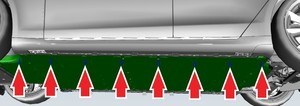 - Remove the LH and RH rocker panel moldings. See Molding - Rocker Panel - LH (Remove and Replace).